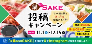 「鍋&SAKE SNSキャンペーン」開催中!抽選で「鍋に合う日本酒」(720ml)が20名様にあたる!