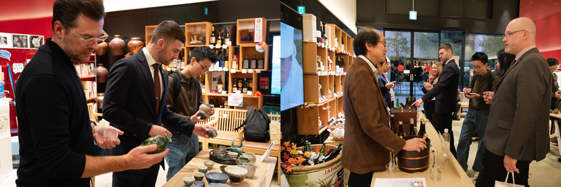 イベント後は、同ビル内の「日本の酒情報館」で開催されていた益子焼の展示イベント「ほっと酒呑む酔い器展 by古風路」にも訪れ、日本の伝統技術が生み出す酒器に触れるなど、日本酒文化への理解をさらに深めていました。