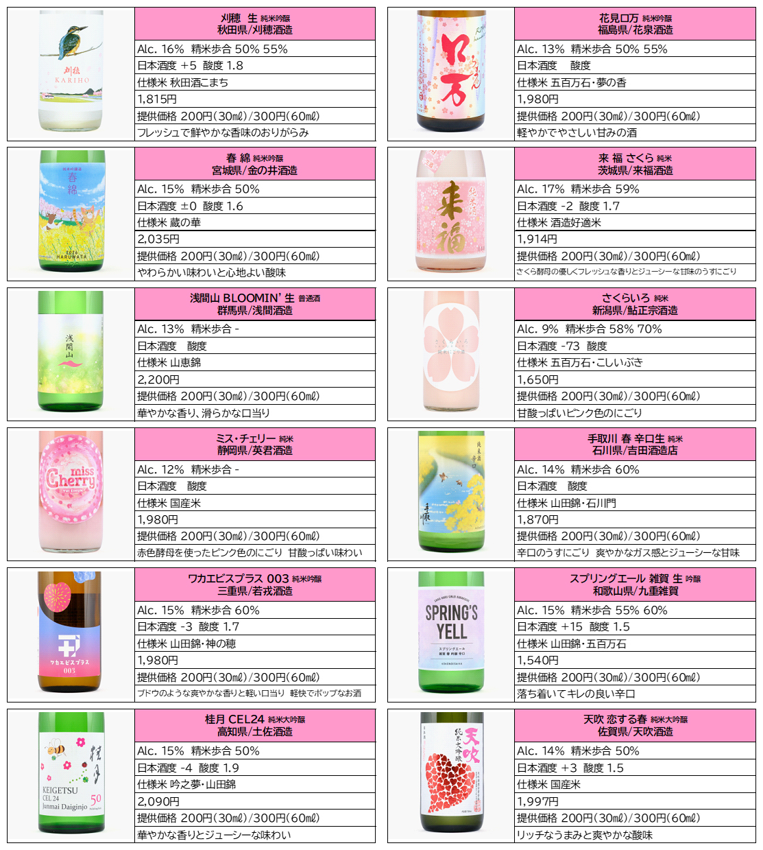 3月・4月の期間、情報館ではこの時期の季節酒 『春酒(はるざけ)』 のラインナップをご提案いたします。